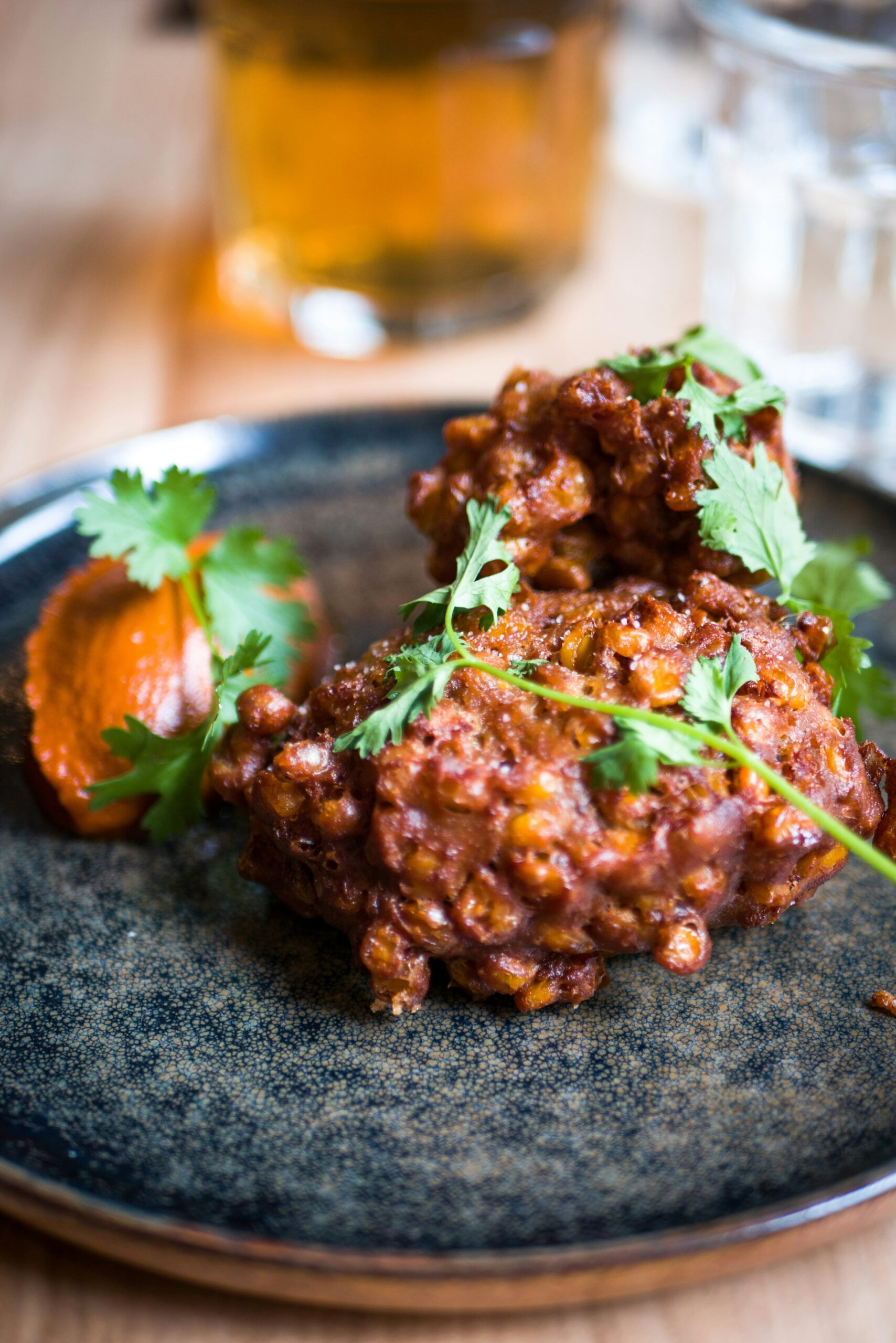 • Seared Scallops: Three plump scallops on a bed of pea purée, drizzled with citrus beurre blanc and microgreens.